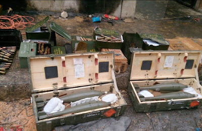 Damas a rapporté qu'une énorme quantité de matériel militaire occidental, comme des armes et des munitions ont été découverts à Alep ...