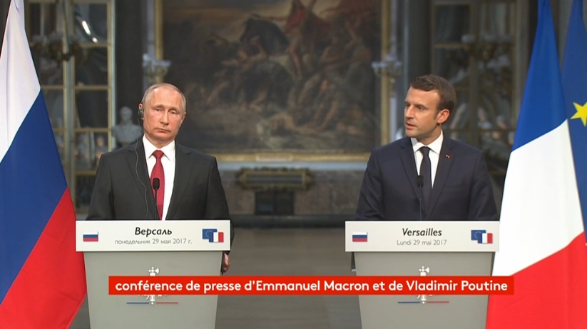 «J'ai toujours eu une relation exemplaire avec les journalistes étrangers, encore faut-il qu'ils soient journalistes», a déclaré Emmanuel Macron alors qu'il était interrogé par Xenia Fedorova, présidente de RT France, sur le refus de ses équipes de laisser des journalistes de RT accéder à son QG de campagne au soir des premier et second tours de l'élection présidentielle. Le président français s'exprimait au cours d'une conférence de presse conjointe avec son homologue russe Vladimir Poutine au château de Versailles le 29 mai.