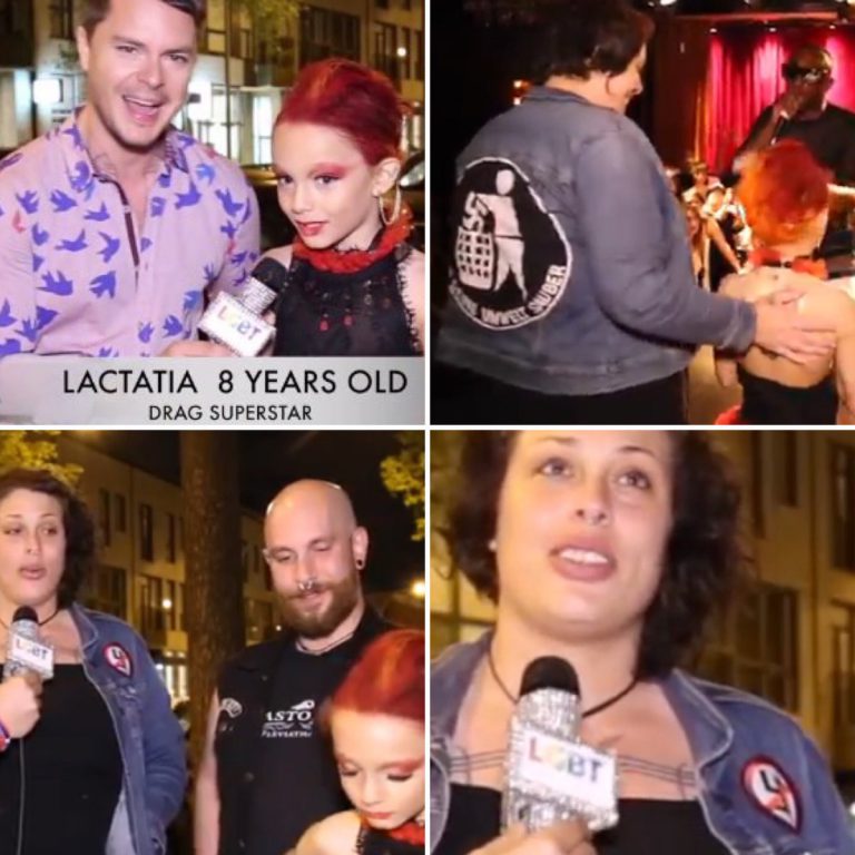 Jusqu’où ira l’abomination ? A Montréal, le lobby LGBT s’extasie devant « Lactatia », le surnom donné à un petit garçon de 8 ans à peine, transformé en drag-queen par ses parents, des dégénérés arborant piercings et badges antifas.
