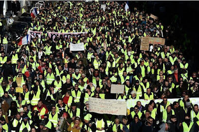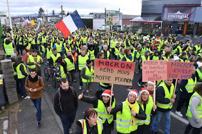 Bravo aux gilets jaunes qui se rebellent contre toutes ces pourritures (je ne parle pas des pilleurs), seulement les gilets jaunes droits dans leurs bottes et qui ne se laisseront plus "guider par des marionnettes".