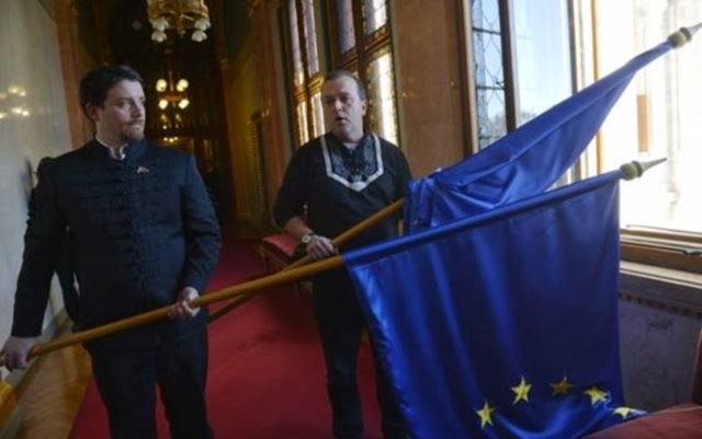 - Un député décroche le drapeau de l’UE du Parlement...