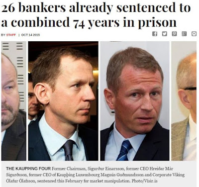 En 5 ans, l'Islande a condamné 26 banquiers à une peine cumulée de 74 ans de prison. Ce n'est pas prêt d'arriver en France. Fawkes