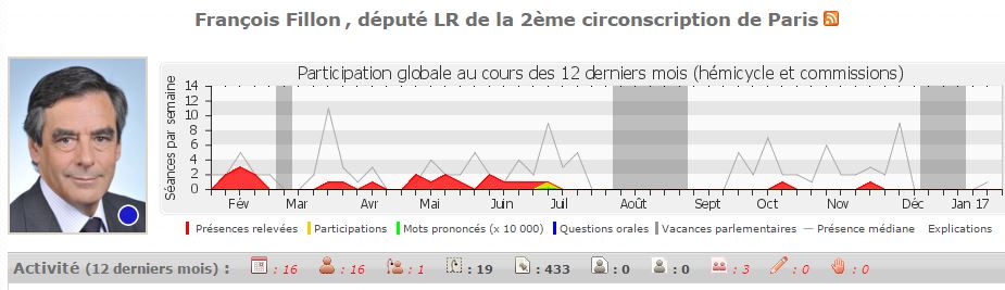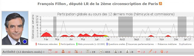 En se référant à la synthèse générale de l'activité parlementaire sur les 12 derniers mois, on constate que celui qui voudrait devenir président de la république pour mettre à genou les français façon Biltzkrieg, n'a même pas l'air très intéressé par son activité de député et cela depuis un bail. En effet, celui-ci n'a assisté qu'à 16 commissions en un an (la plupart concentrées sur la première moitié de l'année en gros).