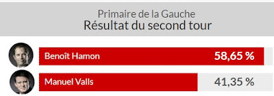 Après l'éviction de l'escroc Sarkozy et le retrait de Hollande (qui de toute façon n'avait aucune chance de gagner, y compris la primaire), c'est réellement la bonne nouvelle du mois. On ne risque plus de revoir Valls de sitôt dans un quelconque gouvernement. Bon après, Benoit Hamon n'est pas un premier choix non plus mais ça ne pouvait pas être pire que Valls donc savourons les petites victoires.