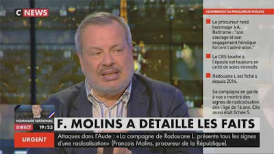 Périco Légasse : «Le terroriste a tiré 2 fois sur Arnaud Beltrame, la jambe et le bras, pour l'immobiliser, pas pour le tuer. Et il l'égorge ensuite. Quelle pudeur des autorités qui savaient dès le début mais ont tu l'égorgement. Encore une complaisance ou un silence inacceptable de la part des autorités !»