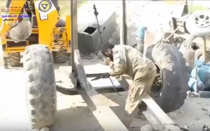 On peut voir dans cette vidéo, l'équipement des White Helmets utilisé pour construire un "canon de l'enfer" comme ceux qu'utilisent les groupes terroristes (Al Nosra et ses avatars, mais aussi DAECH).