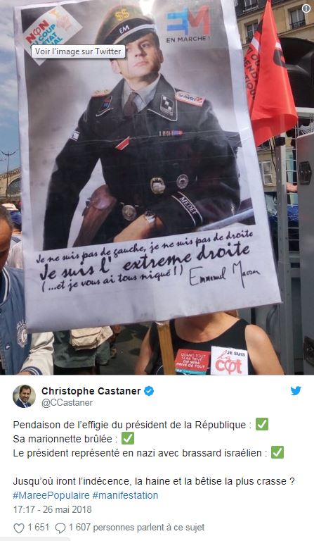 Cette caricature, peu originale mais audacieuse n'a pas été du goût du délégué général de La République en marche Christophe Castaner. ça peut se comprendre. Atteindre le point Godwin de but en blanc, c'est un peu violent. Mais était-ce une raison pour nous ressortir une nouvelle intox? Visiblement oui.