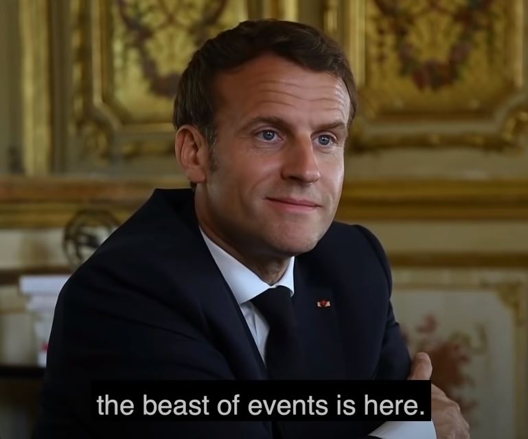 Macron, sourire aux lèves: "Je crois que notre génération doit savoir que la Bête de l’Événement est là et elle arrive"